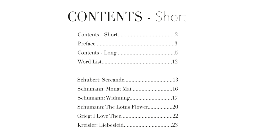 The first part is five songs from the German Lieder tradition, so only voice and piano to start with, in poignant works by Schubert, Schumann and Grieg of various lengths. Then comes two instrumental love songs originally composed for the violin by Kreisler and Massenet, as a kind of intermission in the set. The remaining six pieces are all from the epic opera tradition, or in the case of O Sole Mio, opera-adjacent since it needs to be sung by an opera singer. First a classical scene by Mozart; then an exciting invitation from Carmen by Bizet; two intimate but powerful prayers by Puccini; and finally Isolde’s iconically climactic Liebestod by Wagner. You can read more about every song and see the full translated lyrics in the included Contents section.