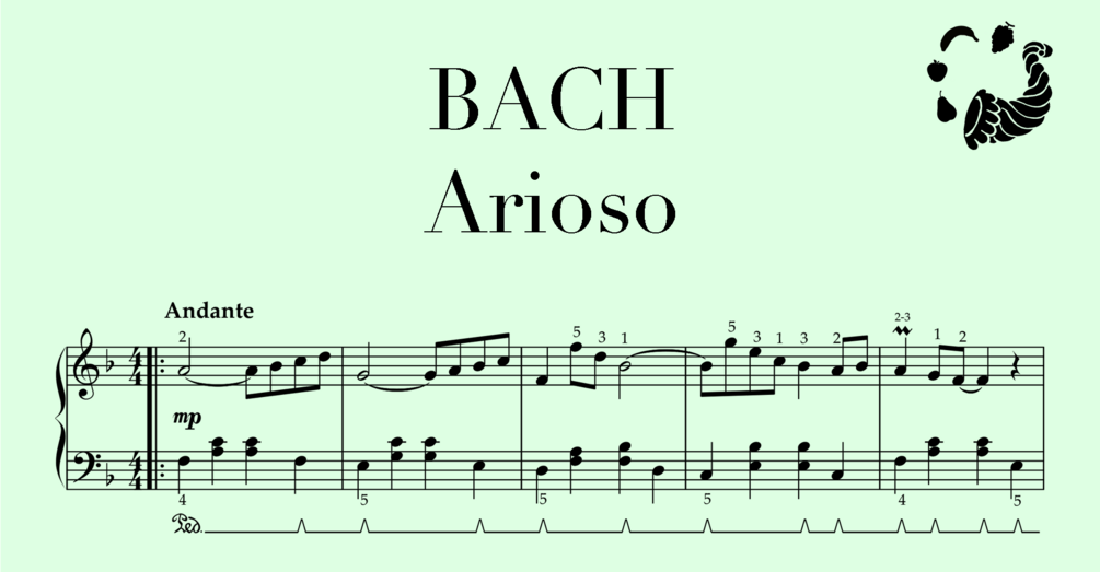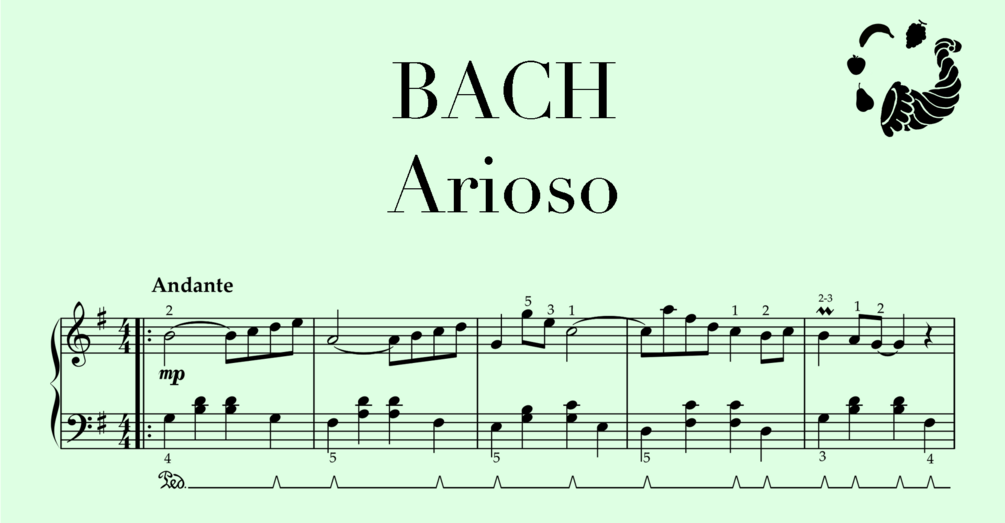 I got to know this piece from a collection of pieces for cello and piano. Originally, it’s written for string ensemble as an instrumental movement of a Cantata, but its adaptation for cello and piano works very well with the pianist taking care of the bass in LH and middle voices in RH. So for a piano solo rendition our RH instead gets to play the beautiful melody, while bass and harmony is centered within an octave for LH. The original is in F major, easy enough to read, but I have also included it in G major here since it is commonly rendered in this key.