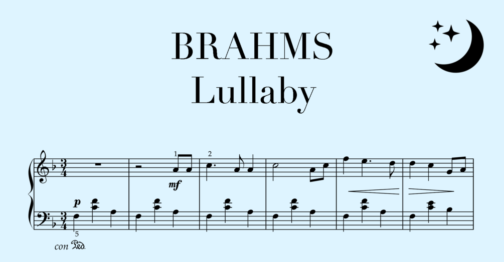 This is one of those melodies we typically learn before knowing anything else about classical music! It’s a song by Brahms, and there hasn’t really been an obvious piano arrangement ready to put on the piano and play – until now. The original song features an extensive piano part with lilting chords, which is all but impossible to play together with the melody, even for a professional pianist. In this arrangement we have a slower lilt in LH that still grasps all important harmony notes, and RH is free to sing the lullaby.