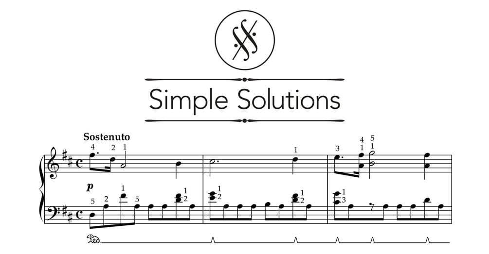 The arrangement comes in two versions: both transposed to an easier key signature as well as kept in the original key. The "Easy Key" transposed version is recommended for the most comfortable Simple Solutions experience. It's easier to read notes without many sharps or flats, which frees up a lot of attention for all other musical aspects only at a cost if you have perfect pitch. The version in Original Key serves the purpose of constituting a stepping stone if you wish to continue with the full original later on, whithout having to unlearn all harmony because it was in the wrong key.