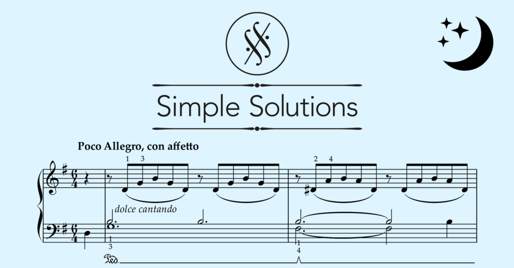 This all-time favourite piece was a founding brick for Volume 3 of Simple Solutions, and it fits perfectly in the series to present a version without the two virtuosic cadenzas (although with traces of them!) or the thick textures of the middle section. The first section is not that much different from the original except for a more compressed register for LH. After the first cadenza tremolo there is an option to skip the middle section altogether and go straight to the Coda where the main melody returns. This works musically if you want a shorter version of the piece. Otherwise all parts of the stormy middle section are included with accompanying key changes. The texture here requires some octaves on the highest point of the melody, but not the substantial octave work that permeates the original. The second cadenza presents an opportunity to play some really fast notes in a way that sounds virtuosic but is deceptively easy since it’s only the same four note repeated up the piano between the hands! – a rewrite that aims to capture the idea of the original music without its technical challenges.