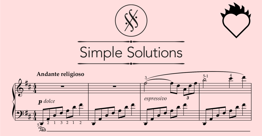 The Simple Solutions series came from the idea that even not-professionally trained pianists should be able to enjoy the feeling of playing great music from the piano repertoire with their own hands. This is possible with some clever rearranging of the musical material: reducing the range of independent voices and jumps while preserving core ideas of melody and rhythm. In this easier setting, you will instead have enough time on your hands (literally!) to bring the music to life and care about those aspect that often otherwise come second: phrasing, articulation, dynamics, and balance. This will help you develop your over-all musicality, which will be of great value in all other pieces as well.