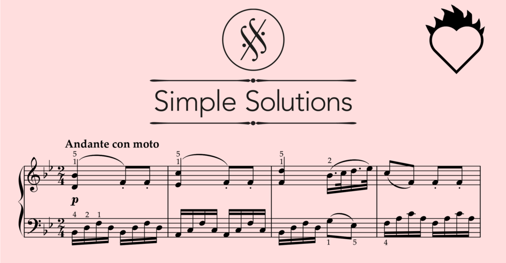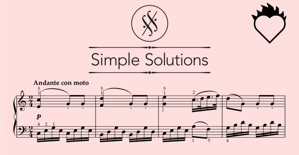 The Simple Solutions series came from the idea that even not-professionally trained pianists should be able to enjoy the feeling of playing great music from the piano repertoire with their own hands. This is possible with some clever rearranging of the musical material: reducing the range of independent voices and jumps while preserving core ideas of melody and rhythm. In this easier setting, you will instead have enough time on your hands (literally!) to bring the music to life and care about those aspect that often otherwise come second: phrasing, articulation, dynamics, and balance. This will help you develop your over-all musicality, which will be of great value in all other pieces as well.