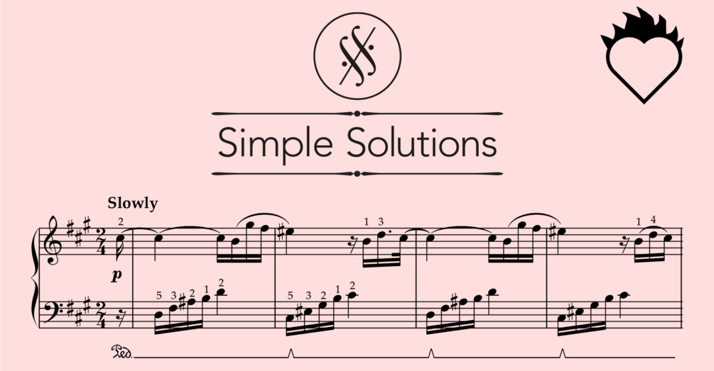 The Simple Solutions series came from the idea that even not-professionally trained pianists should be able to enjoy the feeling of playing great music from the piano repertoire with their own hands. This is possible with some clever rearranging of the musical material: reducing the range of independent voices and jumps while preserving core ideas of melody and rhythm. In this easier setting, you will instead have enough time on your hands (literally!) to bring the music to life and care about those aspect that often otherwise come second: phrasing, articulation, dynamics, and balance. This will help you develop your over-all musicality, which will be of great value in all other pieces as well.